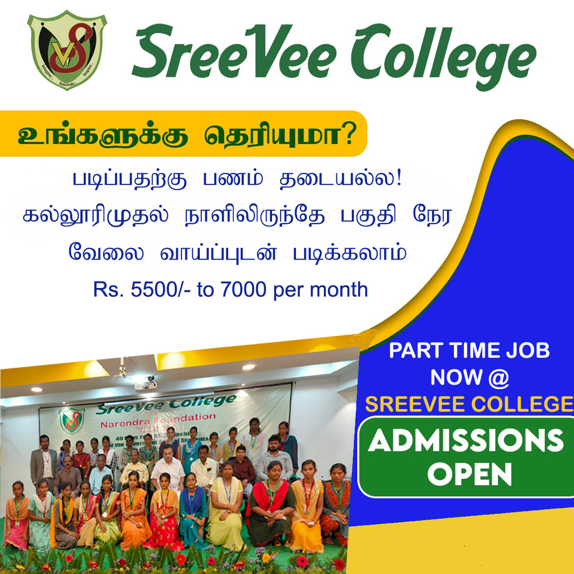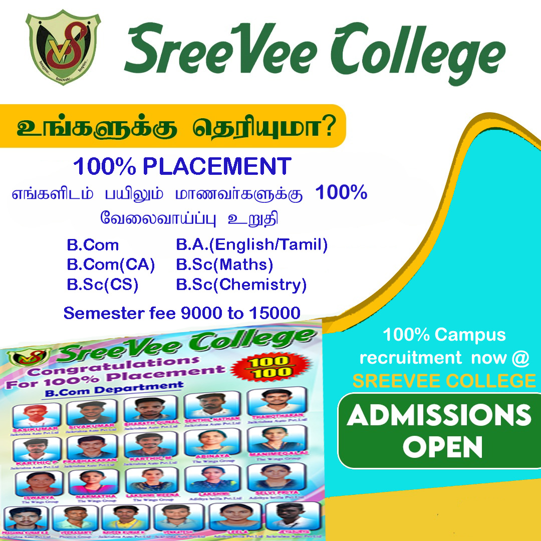 Join NowCoaching for TNPSC Group exams,Personality Development classes(Spoken English Training),Police Training,NCC Army wing,Interview preparations,Aviation Training,Sports activities.